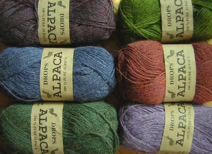 Gefunden habe ich Angela-Farben. Drops Alpaka in heathered Farbmischungen - in ausreichender Menge, um was in den immer gleichen Farben ;-) in Muster zu stricken.
