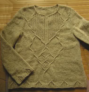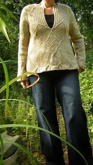 Nadeln 3 (aber sehr locker gestrickt). Und Rückenteil sowie Ärmel ab dem Randmuster mit der Maschine.
