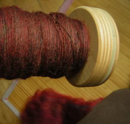 Gesponnen wird hier auch noch. Ich mache gerade eine Pause beim Alpaka-Corriedale und war wenig erfolgreich bei Seide (einem lieben Geschenk) - da muss ich noch üben bzw. mich entscheiden, wie dünn ich das will.