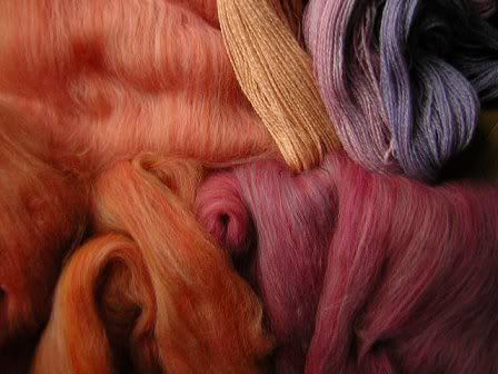Und hier der Ausblick auf die restlichen hellen Farben der Kalten Ente. Es war nicht ganz einfach verschiedene - sagen wir mal - Lachstöne - so hin zu bekommen, das man einen Unterschied sieht. Mal sehen, wie das im gesponnenen Zustand wird.