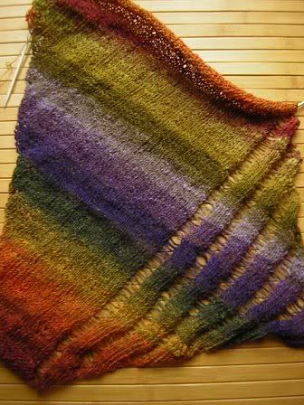 Jedenfalls bin ich nun gut mit Garn ausgestattet - für eine kleine Weile - inklusive ein Feiglings-Nachschub-Knäuel vom Regenbogen-Kauni. Ich habe mir auch ein Noro-Sockengarn geleistet (...da wo die Sucht zuhause ist), aber nicht für Socken, nein, für einen Schal. Vielleicht ein Clapotis?