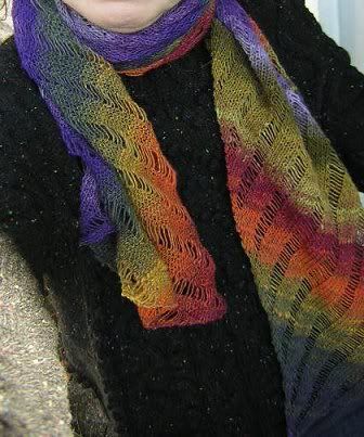Gestrickt mit 3er Nadeln und wenig mehr als 100 Gramm Noro-Sockenwolle. Da so viel übrig war - meiner Meinung nach reicht ein Schal dieser Länge bzw. ich mag das so - mache ich nun doch ein Paar Socken. Weil das in der Mittagspause eine gute Beschäftigung ist, habe ich mich heute auch gleich mit zwei neuen Lana-Grossa-Sockenknäueln eingedeckt.