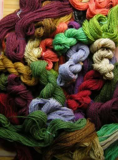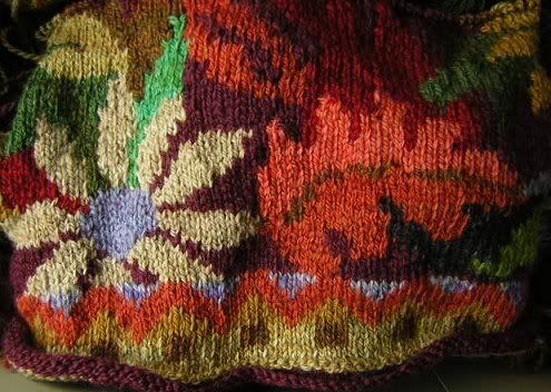 Angeregt von Somas Idee, das Floral Jacket (ravelry-Link) mit Ersatzgarnen zu stricken, habe ich auch hier zugeschlagen: Merino superwash und zwei Knäuel (Flieder und Orange) aus Mischgarnen mit Polyester (schäm). Meine Hintergrundfarbe ist allerdings Schwarz - so ein dunkes Grün ist sehr schwer zu finden. Aber sonst passt es, denke ich. Oder?
