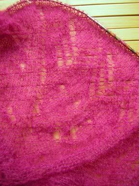 Das soll jedenfalls Honeysuckle - diese kreisförmige Jacke aus dem neuen Rowan-Heft werden. Die will ich einfach stricken. Wird natürlich an eine Freundin verschenkt. Und die wollte Pink (ich hätte auch Kobaltblau oder Hellgrün von dem Strickmaschinen-Mohair...).