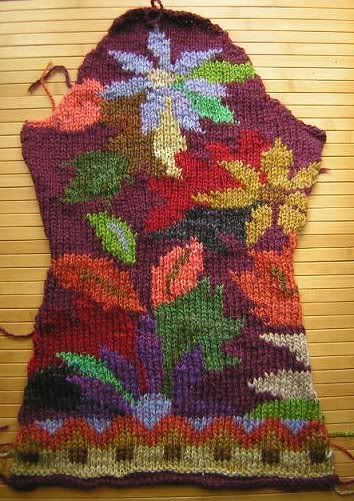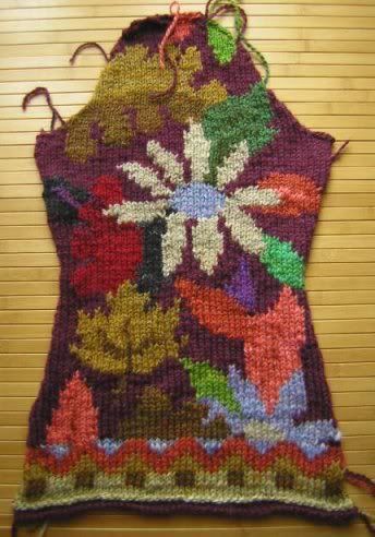 Dies ist ein Beispiel für etwas, das ich vor dem Zusammennähen spanne - ja sogar wasche, denn Intarsienstrick wirft bei mir Falten.