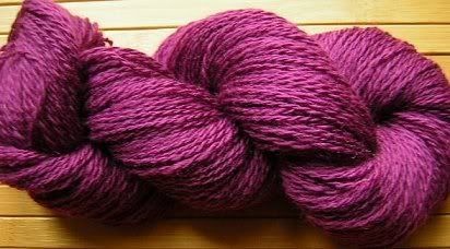 Das sind schon mal knapp 80 Gramm für den japanischen Pulli. Ich habe diesmal nicht kardiert, sondern das Wollknoll'sche Brombeer pur genommen. So dünn zu spinnen (ca. 170m/50g) dauert allerdings wieder seine Zeit.