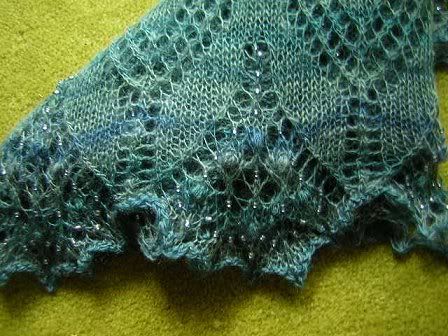Der Aeolian Shawl hat Spaß gemacht beim Stricken. Auch wenn das gar nicht meine Farbe ist und Gebimmsel mit Perlen auch nicht mein Ding. MACHEN muss ich das Eine oder Andere eben schon. :-)