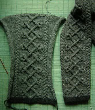 So richtig in Panik geraten bin ich dann, als der Ärmel länger wurde als mein "alter". Also, eigentlich soll der auch länger werden, bloß habe ich die Zunahmen dafür neu berechnet, also der soll nicht einfach unkontrolliert länger werden. Aber heute, im schwülen Tageslicht mit kühlerem Mütchen, beträgt die Differenz nur etwas mehr als einen Zentimeter - und das kann davon kommen, dass meine Jacke schon gewaschen ist.