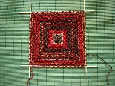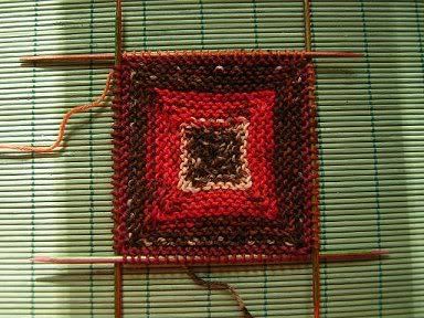 Ich habe übrigens die Maschen an den Kanten auch kraus gestrickt - entgegen der Anleitung - denn das sah nicht gut aus. Und für alle, die das noch nicht kennen: Acht Maschen im Rund schlägt man am besten an, indem man aus einer Garnschlaufe abwechselnd rechte und linke Maschen herausstrickt. Dann kann man das Rund zusammenziehen. Sehr elegant.