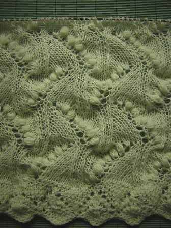 Das Muster der Spitzen-Kante vom oberen Rand kann ich eigentlich nicht verwenden, denn angestrickt sieht das völlig anders aus. Das doofe Knitting On The Edge (bah, ich konnte noch nie was aus diesem Buch gebrauchen) zeigt auch nur von unten her gestrickte Kanten.