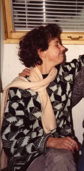 Bilder des Schreckens Ende der Achtziger (1989). Ein Rundpassen-Pulli aus handgefärbtem(!) Garn und immer noch diese schrecklichen Karottenhosen - und die handbemalte Jacke. Und alles im wirklich furchterregenden Kampf-Lesben-Look. Aber meine innere Haltung war zu dieser Zeit entsprechend. Wirklich schlimm.