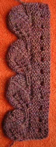 Fündig wurde ich dann in dem ansonsten bisher unbrauchbaren Knitting On The Edge. Davon habe ich gleich zwei Ärmelkanten hergestellt. Doch nun beschleichen mich Zweifel, ob das Gebaumel der - ansonsten sehr passenden - Blätter um die Kante, um den Hals und unten herum so kleidsam ist. Hmmm.
