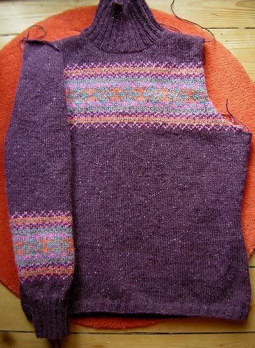 Wie man vielleicht sehen kann, habe ich die Bordüre beim rechten Ärmel noch ein kleines bisschen höher als beim Original gemacht. Damit auch wirklich klar ist, dass es Absicht ist (ich will nicht dass mir jeden Tag jemand sagt, bei meinen Ärmeln sei etwas schief - so wie bei einer anderen ravelerin).