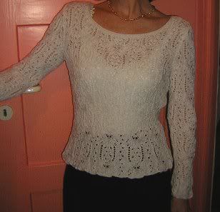 Kelmscott habe ich auch fertiggestellt, doch dieses Jäckchen muss ich erst mal waschen und dann vielleicht entscheiden, ob ich es noch färbe, damit das Muster besser rauskommt. Ach, Elend.