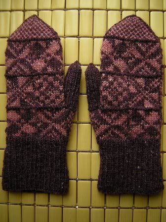 Für Baxter aus dem letzten Rowan Winterheft (46). Das sind eigentlich nur fingerlose Stulpen mit zwei Mustersätzen in der Höhe und ich war sogar zu faul, mir für die dritte Reihe was Eigenes einfallen zu lassen. Habe einfach das gespiegelte Muster von der jeweils anderen Hand verwendet.