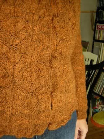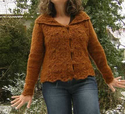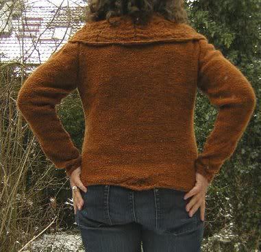 Endlich hatte ich mal wieder Zeit, meine eigenen Sachen zu stricken. Und heute bin ich gerade rechtzeitig fertig, um an die Nähmaschine zu gehen. Ich habe einfach nach Erfahrungswert und nach einem vollständigen Stern in der Mitte mit dem vorderen Halsausschnitt begonnen. Man kann hier auch ganz gut die Armausschnitte sehen, gell? Gegen alle FI-Regeln. :-)